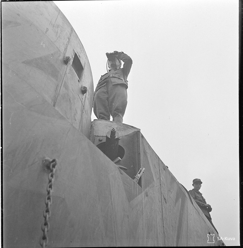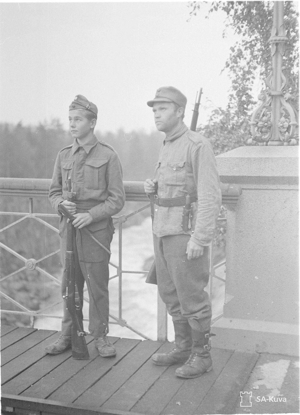 Tenho Miikki, Imatra Mellunkylä, 14 years old (was involved in the previous war at the age of 12). Guards the Imatra bridge together with old Aaro Ruusu, from Imatra. At this time, the Ryssi were still in possession of Enso and bombarded Imatra with grenades. On the bridge, they had a direct view of Enso. Photo courtesy of SA-Kuva