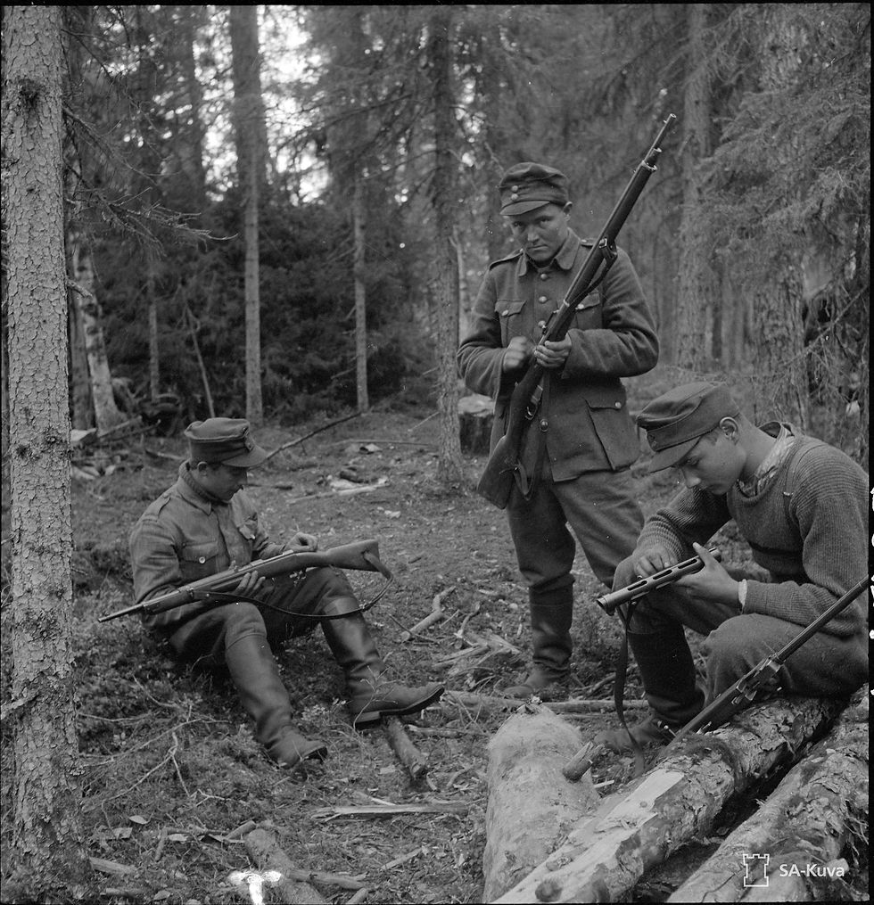 This soldier has a Finnish M91, as evident by the escutcheons in the stock. This implies that this soldier had previously captured this rifle from Finland, or that this photo was staged. Photo courtesy of SA-Kuva