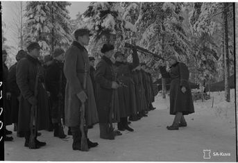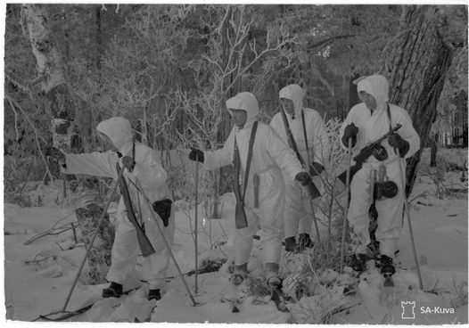 A Finnish soldier on post during Christmas night with an M91 on the Karelian Isthmus